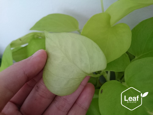 ผิวใบสีเขียวอ่อนแกมเหลืองเป็นมันของของฟิโลทอง