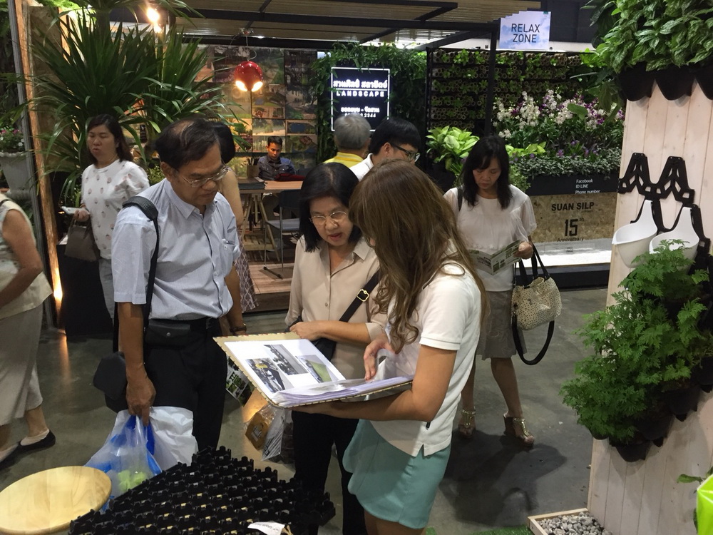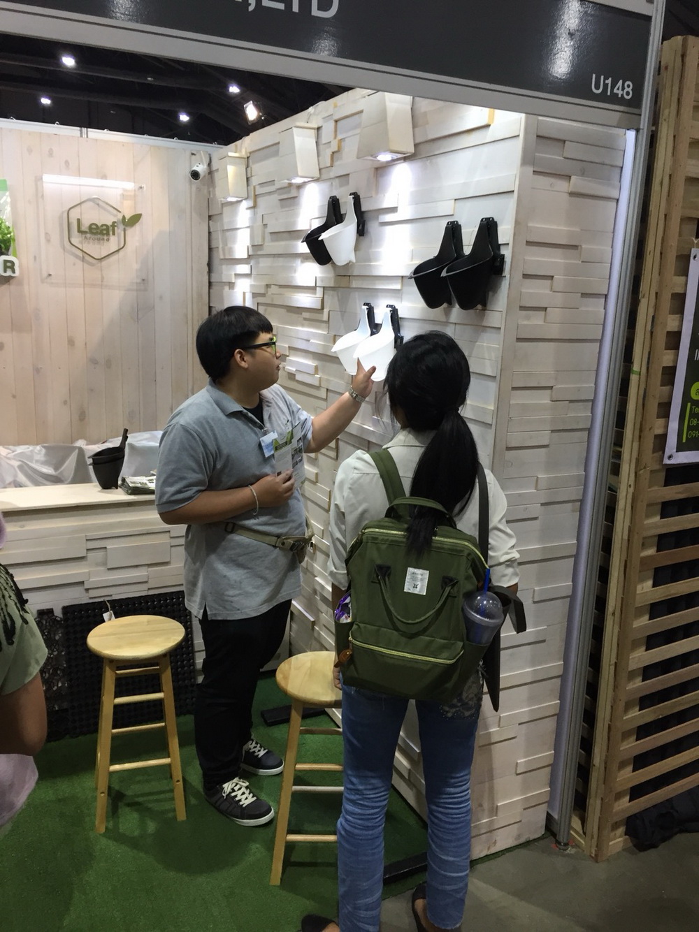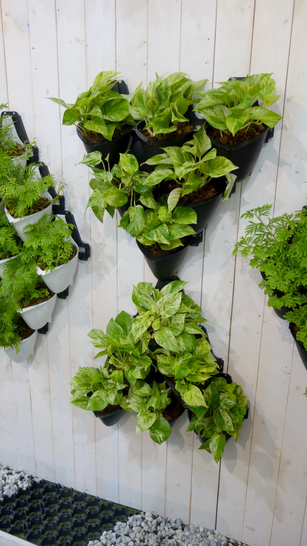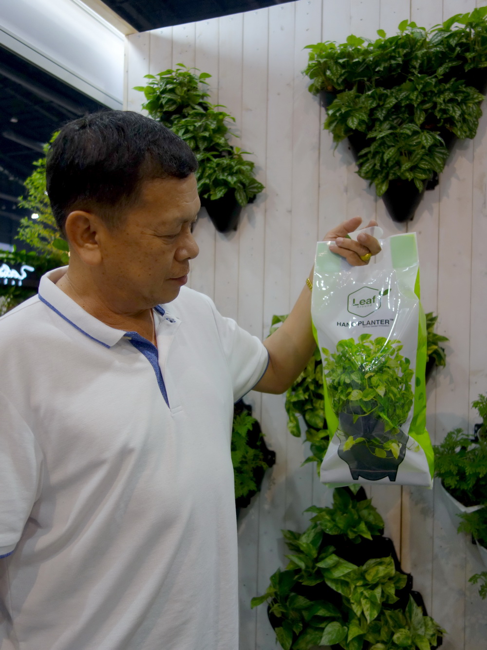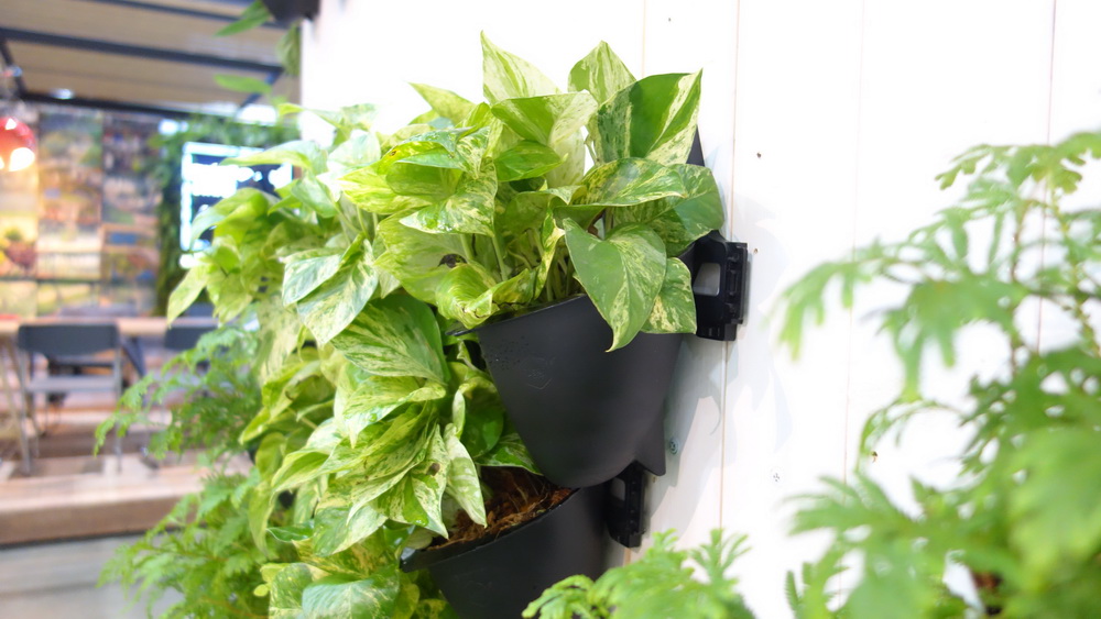 นอกจากนี้เรายังได้ตกเเต่งผนังบูธด้วยสวนเเนวตั้งสไตล์มินิมัล เพื่อเป็นภาพตัวอย่างให้กับกลุ่มลูกค้าทางบ้านที่ต้องการไอเดียจัดสวนเล็กๆ ใช้จำนวนกระถางน้อยๆ ในพื้นที่หลากหลายรูปแบบ เเละให้ลูกค้าได้ถ่ายรูปนำไปประยุกต์ใช้กับขนาดพื้นที่ของแต่ละบ้าน