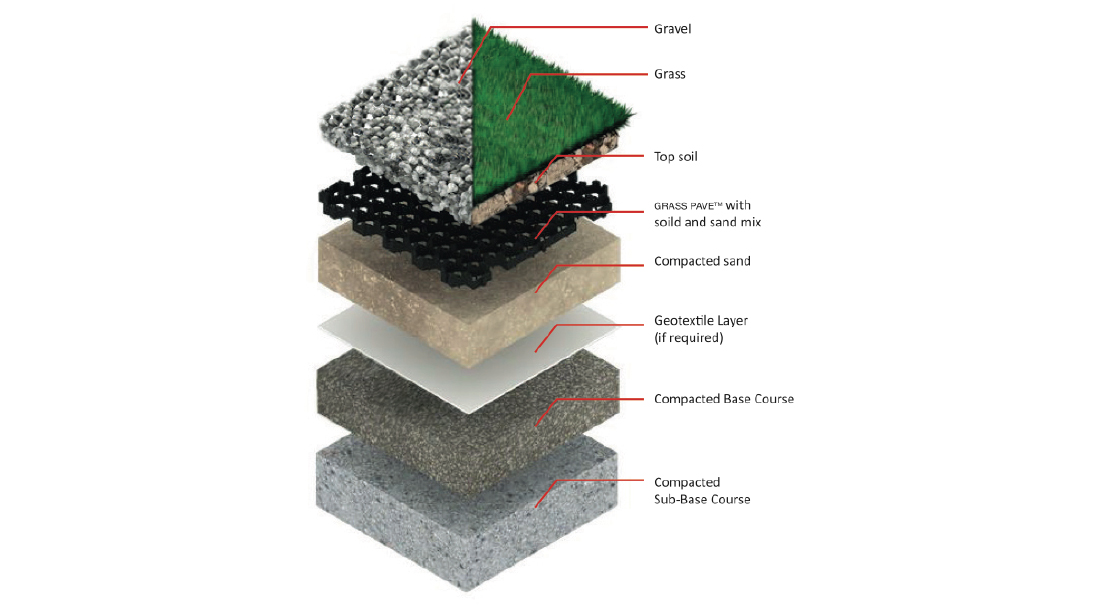 GRASS PAVETM เป็นแผ่นตะแกรงปลูกหญ้าที่ใช้สำหรับงานเสริมกำลังดินให้กับพื้นสนามหญ้าหรือพื้นโรยกรวด ซึ่งถูกออกแบบมาให้มีน้ำหนักเบา มีความแข็งแรงทนทานสูง และมีอายุการใช้งานที่ยาวนาน โดย GRASS PAVETM เป็นผลิตภัณฑ์ที่ผลิตจากพลาสติก Recycled High Density Polyethylene ที่มีคุณภาพสูง สามารถนำมาใช้งานได้ในหลายลักษณะงาน เช่น งานสนามหญ้า, ลานจอดรถแบบปลูกหญ้า, ลานจอดรถแบบโรยกรวด, ทางเดินรถฉุกเฉิน (รถดับเพลิง), ทางเดินรถกอล์ฟ ฯลฯ