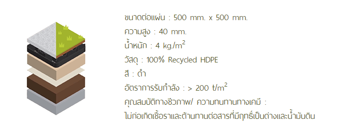 4. วัสดุ GRASS PAVETM มีอายุการใช้งานที่ยาวนาน เนื่องจากใช้พลาสติกเป็นวัตถุดิบในการผลิต